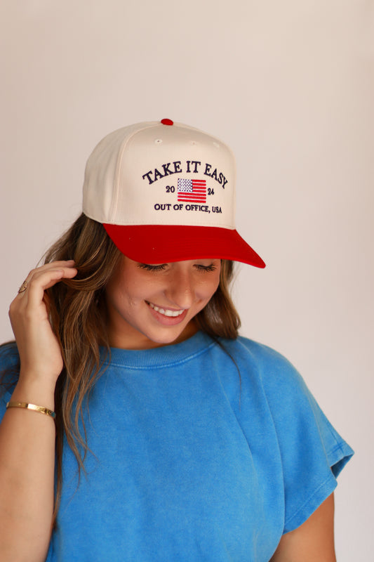 Take it Easy Vintage Snap Back Hats- Navy/Red
