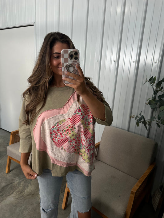 Heart Patch Mineral Washed Knit Top **LAST CALL**