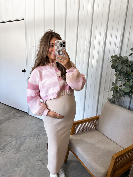 Buttery Soft Cropped Waffleknit Pullover - Pink