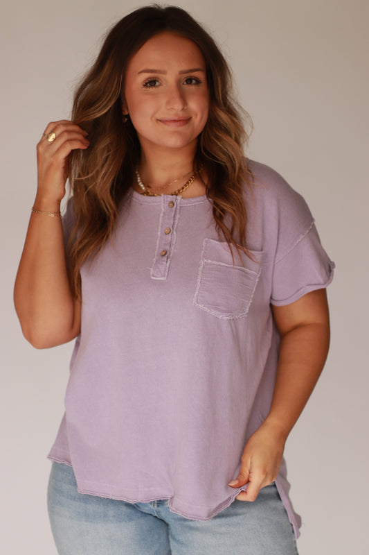 Garment washed short sleeve henley- lavender