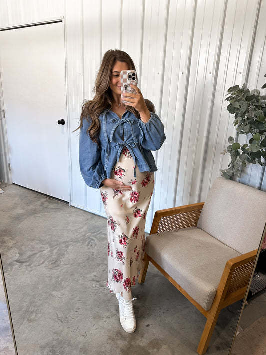 Sold outDenim Open Front Babydoll Blouse