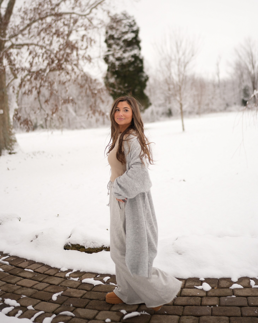 Soft Slopes Knit Cardigan- Grey/Ivory