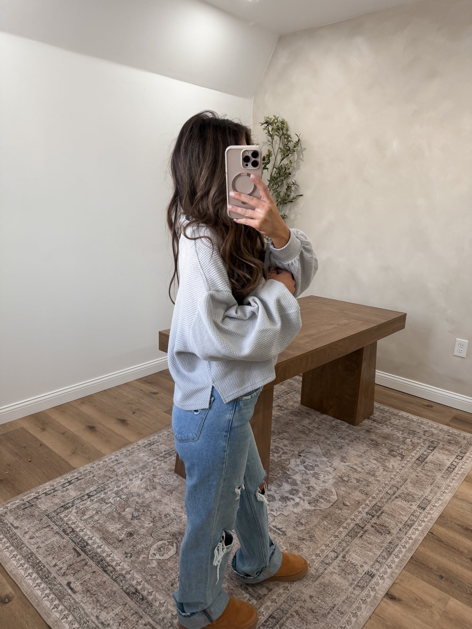 Embrace cozy comfort with the Aspen Silver Spark Go-To Half Zip Pullover in versatile grey. This thermal cotton blend pullover combines warmth with effortless style, featuring a classic collared neckline and convenient half-zip closure for easy layering. The cropped silhouette flatters your frame while relaxed drop sleeves with ribbed cuffs add a contemporary touch. Perfect for cabin getaways, weekend lounging, or transitional weather—your new go-to piece for laid-back sophistication.