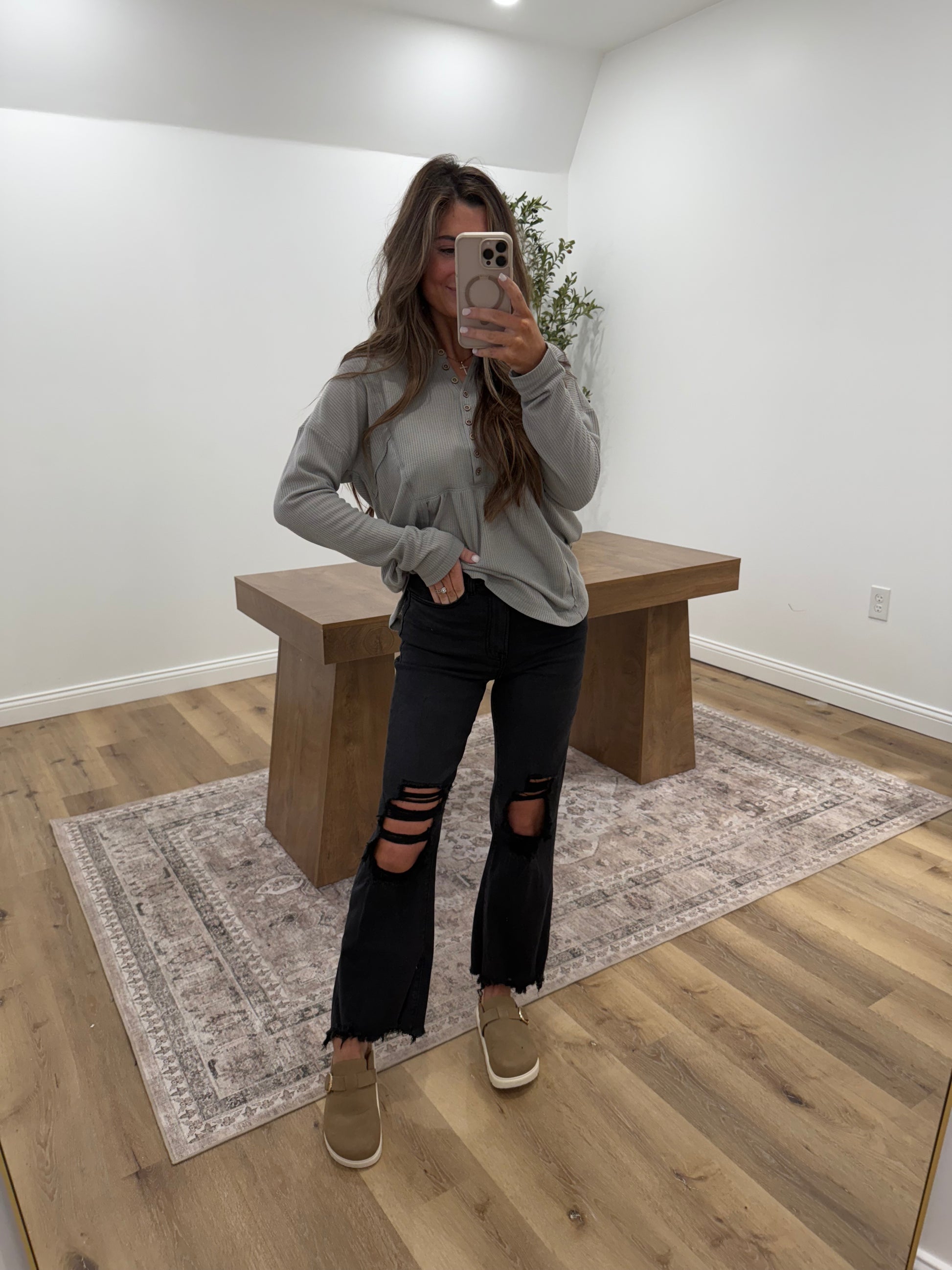 Elevate your casual wardrobe with this high-waisted denim that works beautifully on every frame. Featuring strategic distressing at the knee and hem, a semi-cropped silhouette, and just enough stretch for all-day comfort, this black wash delivers effortless style. Whether you're petite or tall, the flattering cut ensures a perfect fit that feels as good as it looks.