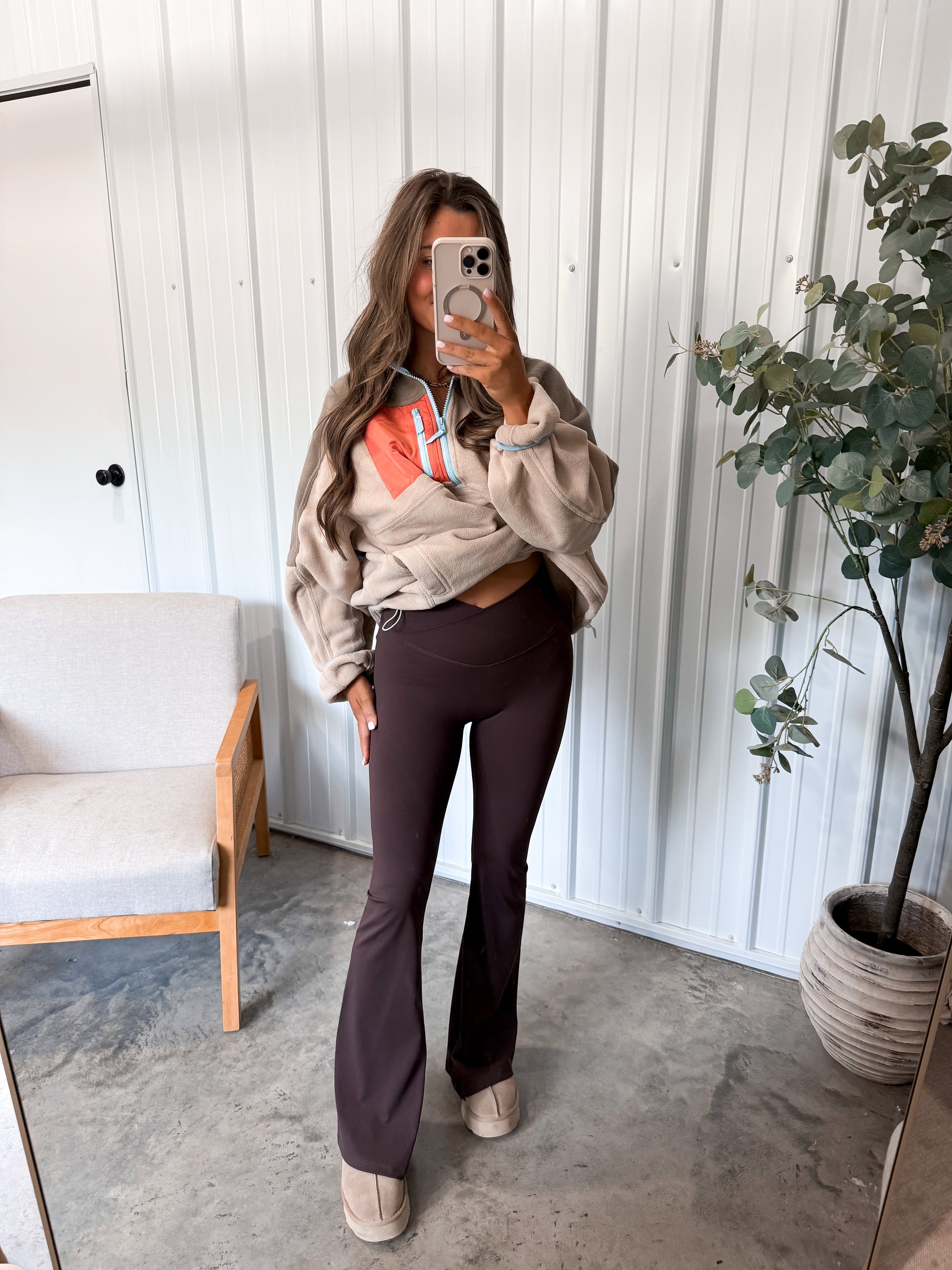 Experience our bestselling Crossover Flare Leggings, now improved. The updated design eliminates the front middle seam for a smoother, more flattering fit, while the slightly higher waistband better contours your waist and hips. Crafted from ultra-soft fabric, they feel like a second skin for unmatched comfort.