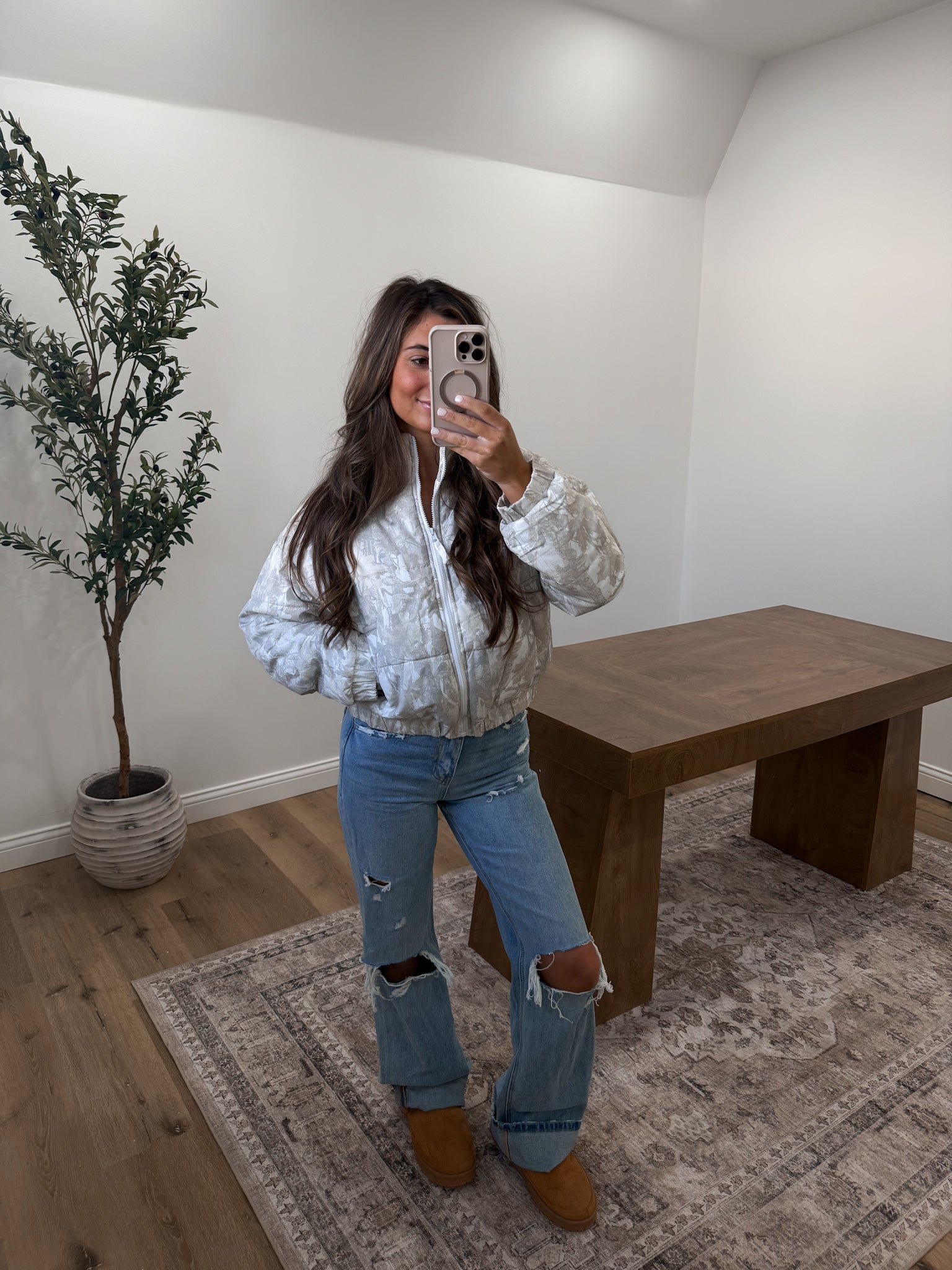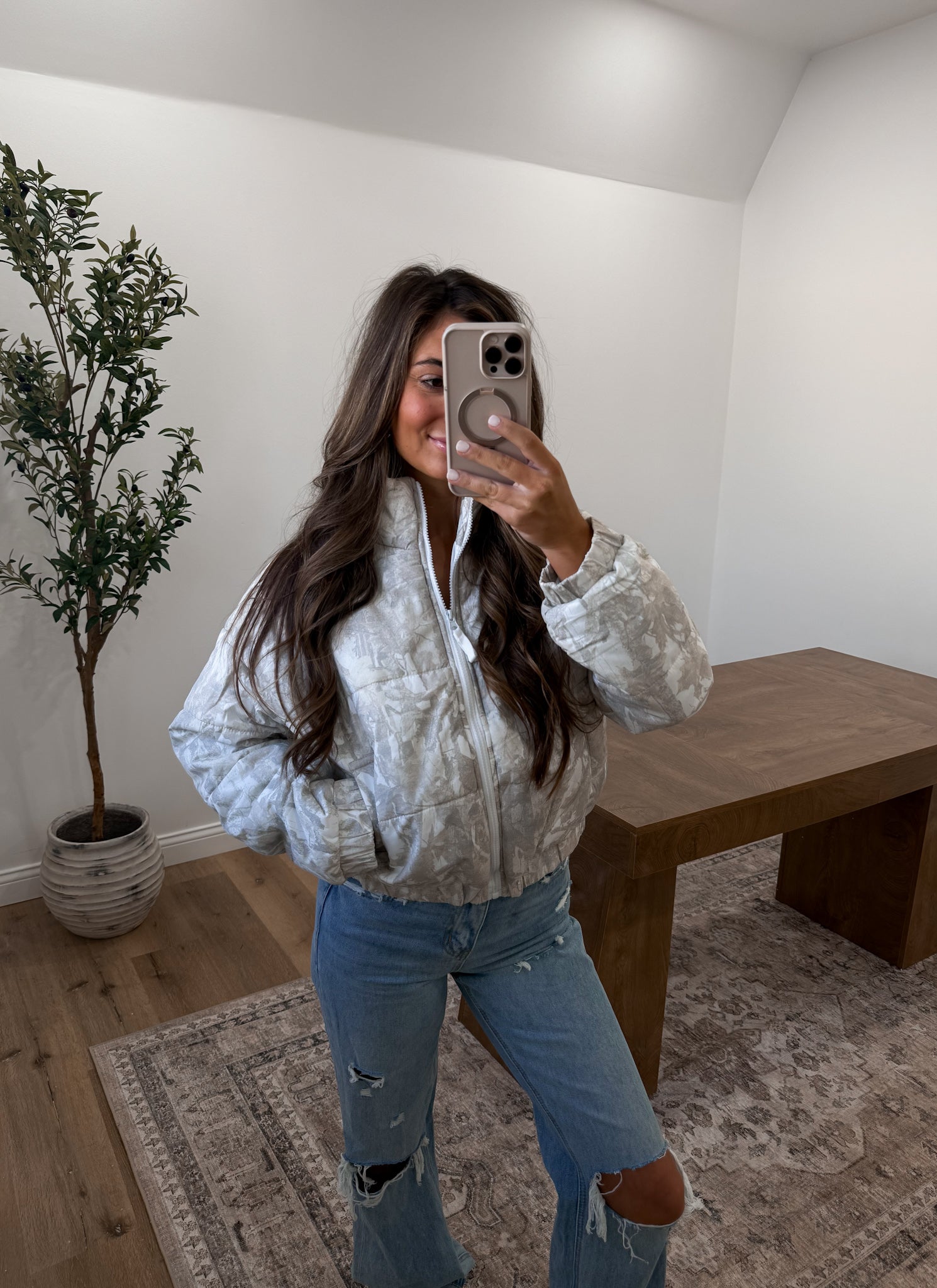 Quilted Puffer Jacket - woodland white camo