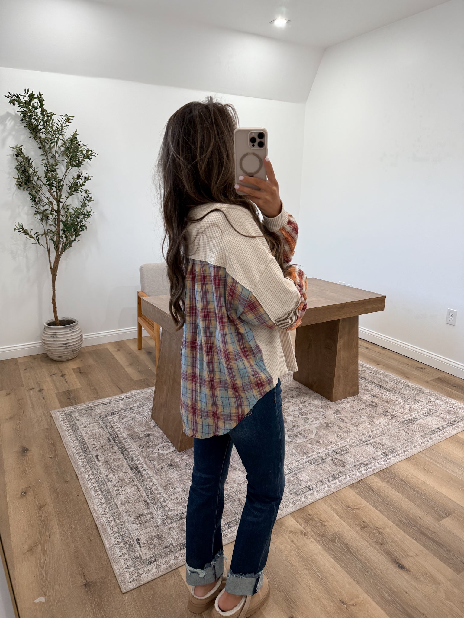 Elevate your wardrobe with this versatile chestnut henley, featuring a textured waffleknit fabric that delivers both comfort and style. The thoughtful striped and plaid accents add visual interest, making it effortlessly suitable for casual outings or polished occasions.