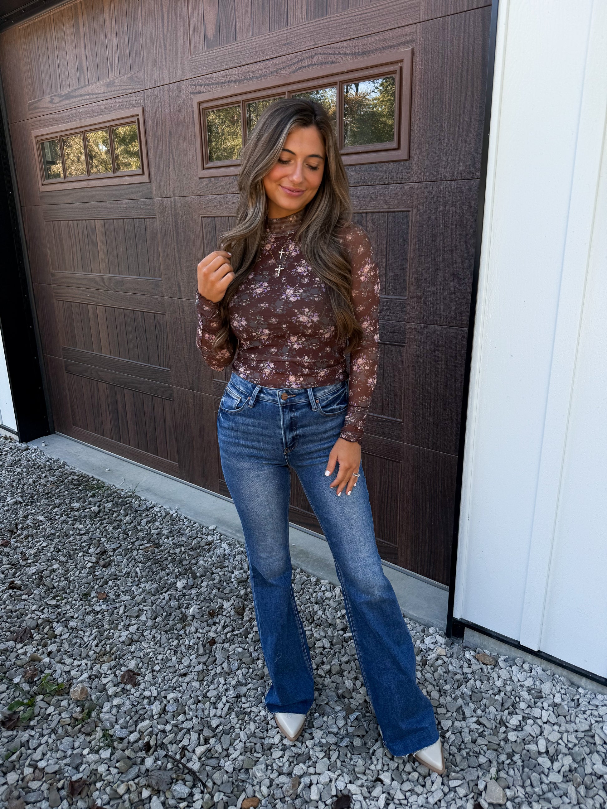 Havana High Rise Raw Hem Flare Jeans- Dark