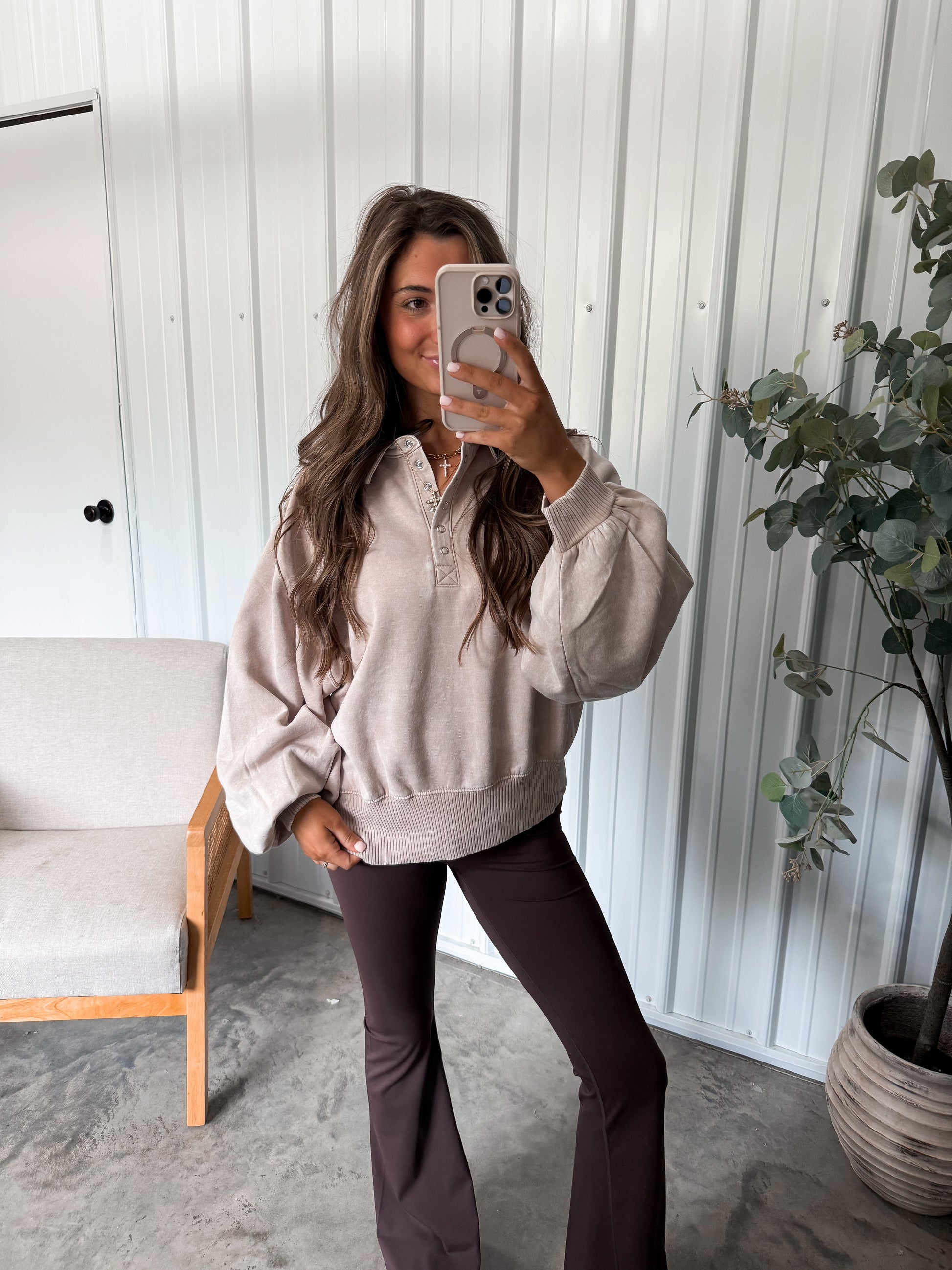 Megan Button Up Pullover - ash mocha