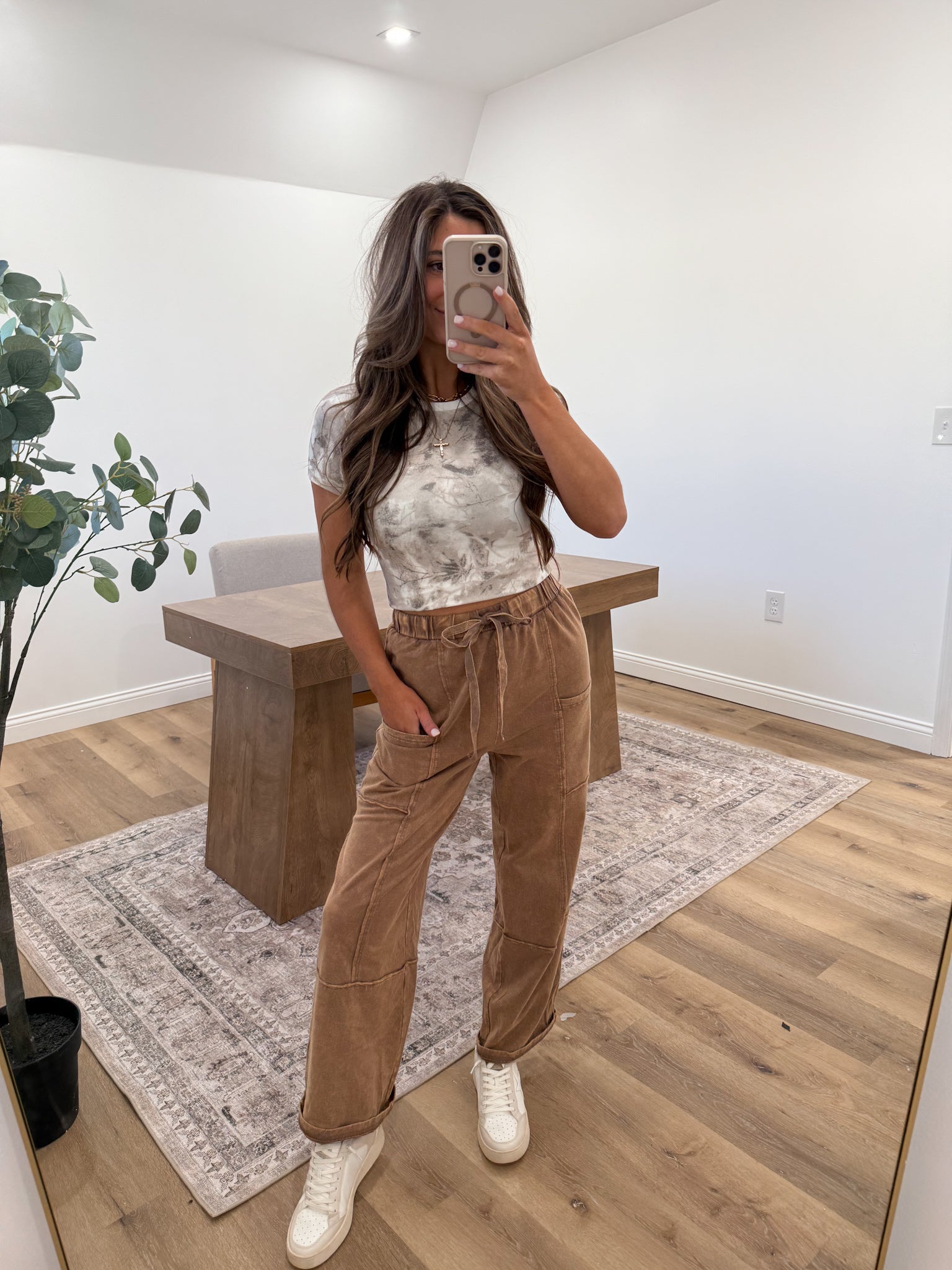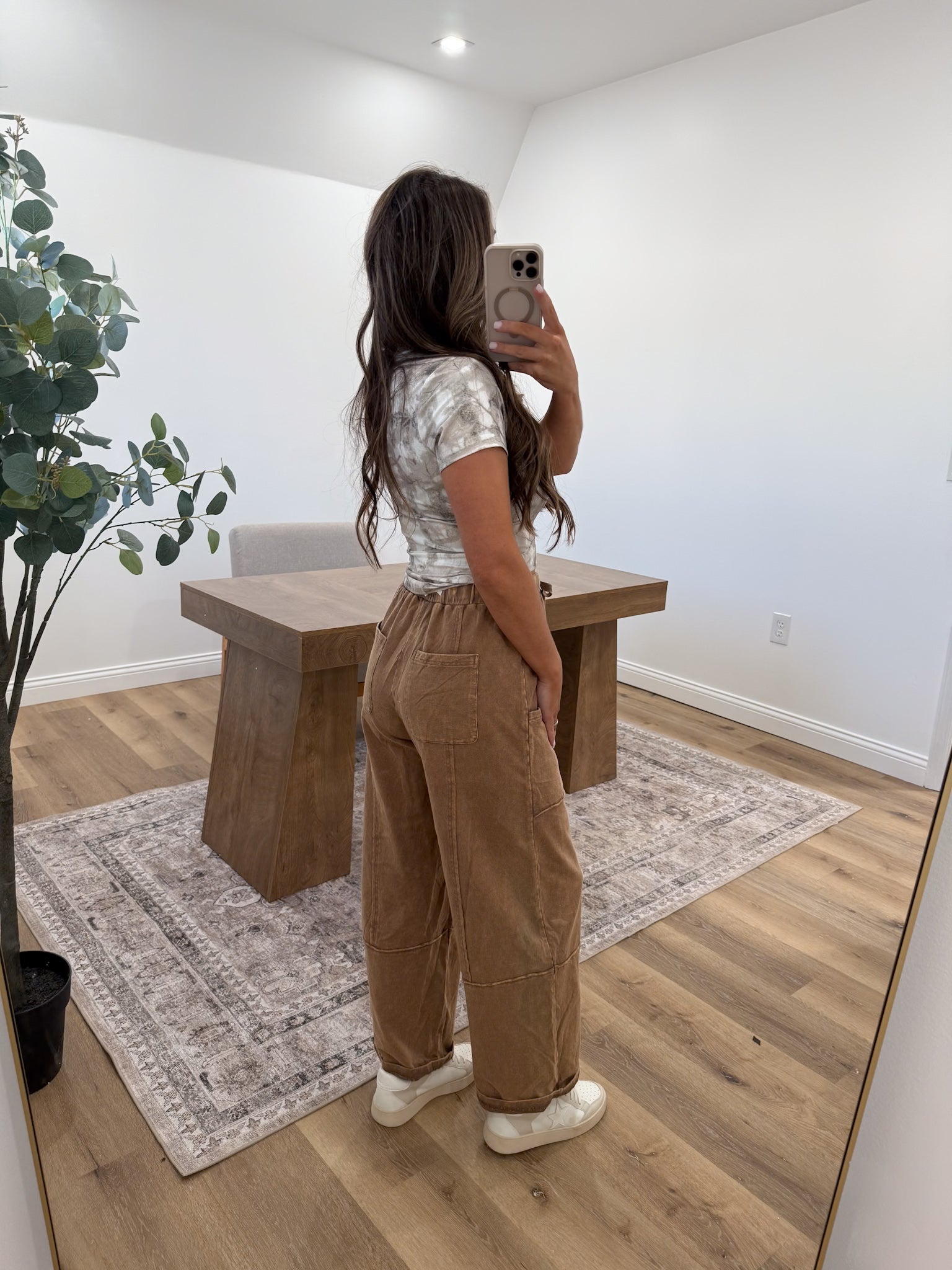 Experience ultimate comfort with these mineral-washed wide-leg pants featuring an elastic waistband and adjustable drawstring. Designed for everyday wear, they include convenient side and back pockets for your essentials. Available in three versatile colors to effortlessly elevate your casual wardrobe.