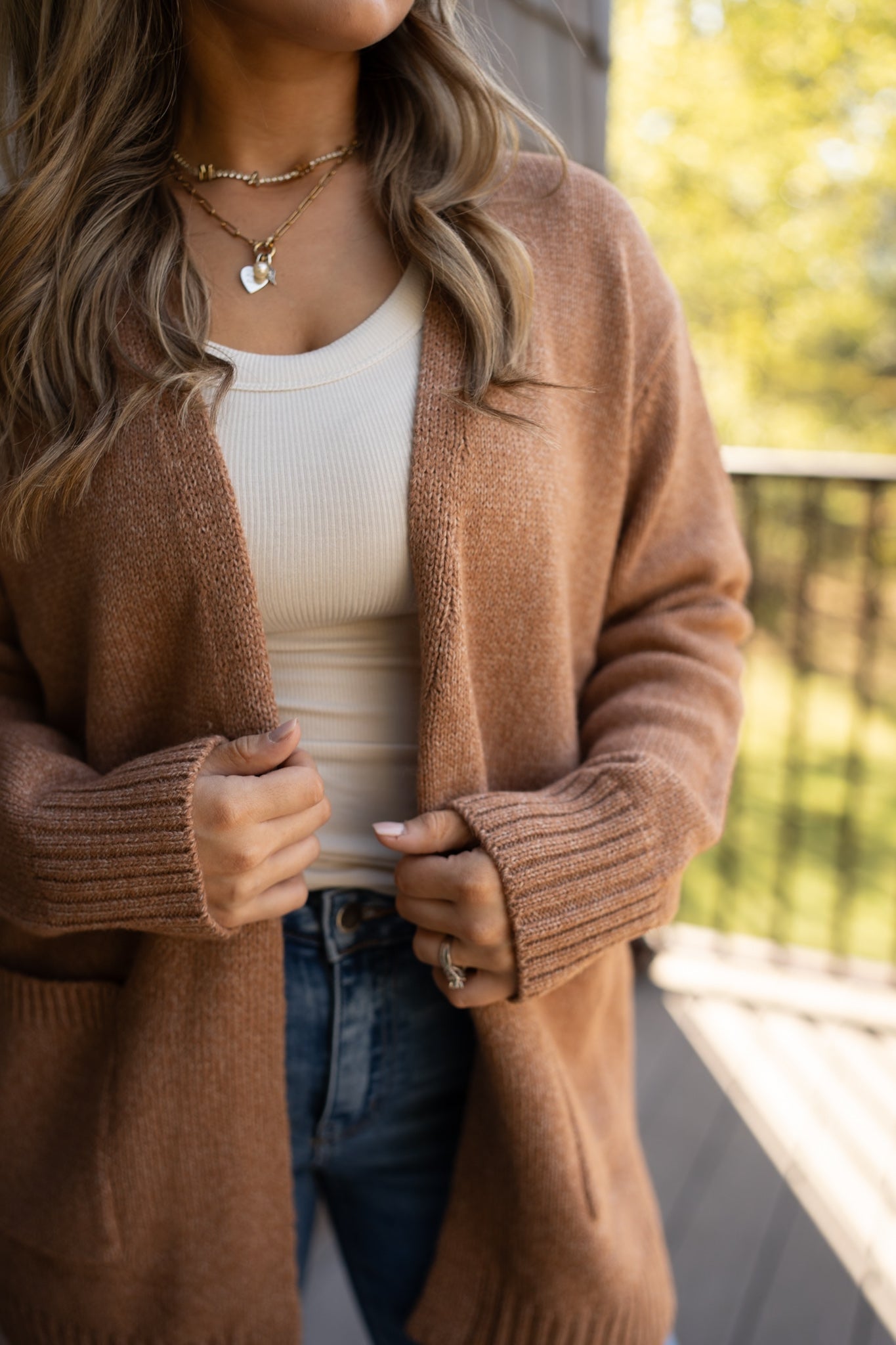 Open front sweater cardigan - camel