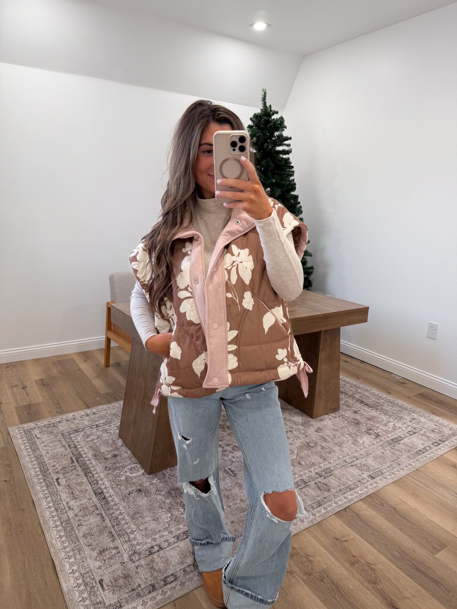 Make a statement with this charming floral print corduroy vest, designed for effortless style and practicality. The lightweight construction and puffed sleeves create a flattering silhouette, while convenient side ties let you customize the fit to perfection. Functional pockets keep your essentials close, and the button-up front makes layering a breeze. Whether you're running errands or heading out for the day, this versatile piece combines fashion-forward design with everyday wearability.
