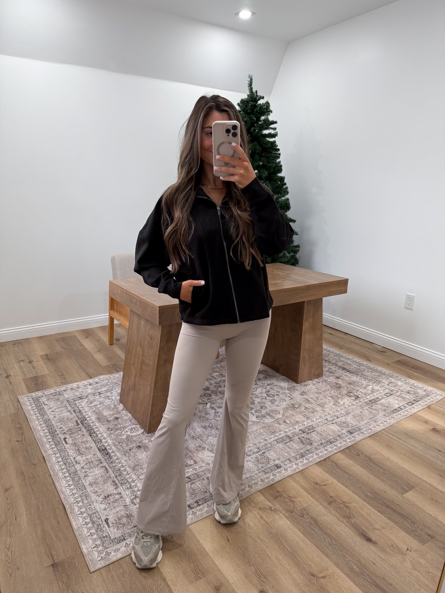 Elevate your layering game with this versatile full zip jacket crafted from premium scuba cloud material. Designed for effortless comfort, it features a cozy hood and convenient pockets to keep essentials within reach. The lightweight construction makes it perfect for transitional weather, allowing you to stay warm without the bulk. Whether you're running errands or relaxing outdoors, this sleek black jacket delivers both style and functionality you'll reach for again and again.